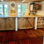 The Horslunde accommodation includes a fully furnished kitchen fitted with tea and coffee making facilities, a fridge, and kitchenware.